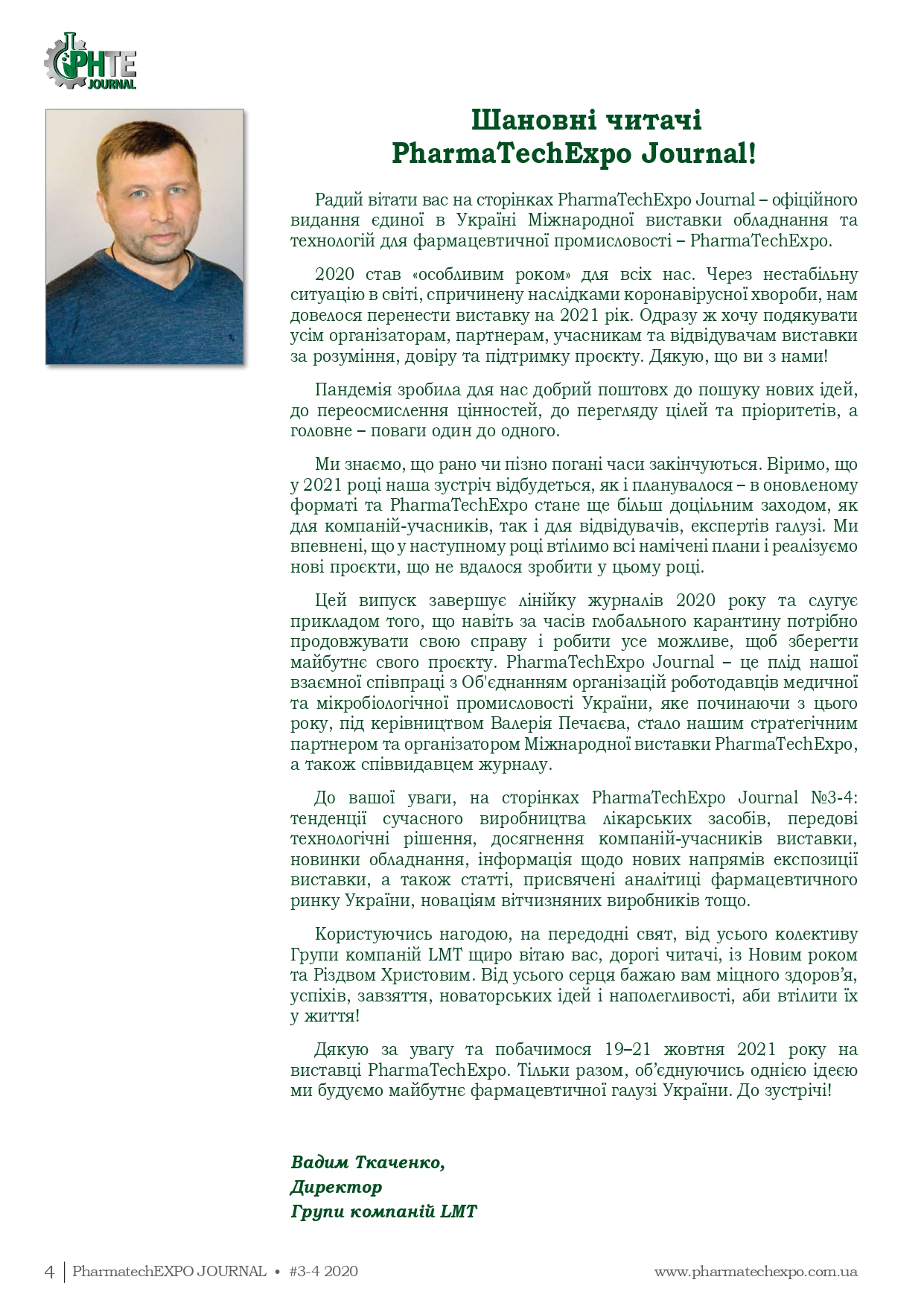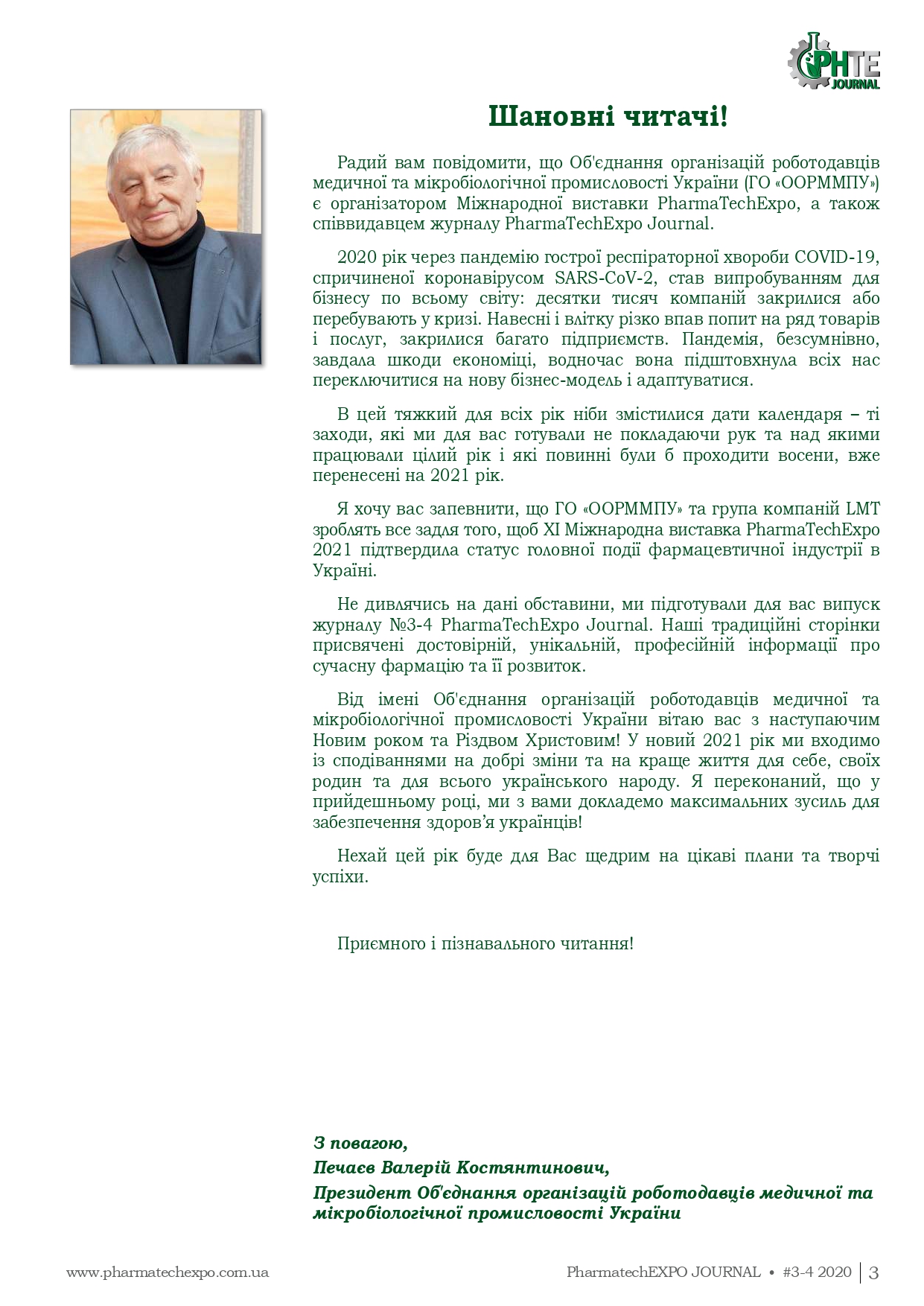 Вийшов новий випуск професійного видання для фахівців фармацевтичної промисловості – PharmaTechExpo Journal (№3-4, 2020 додається)!